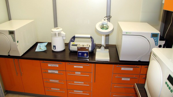 Мы заботимся о наших пациентах и делаем то, чего хотим и для нас, и для наших собственных семей. Мы используем передовые технологии для стерилизации и дезинфекции, которые обеспечивают полную очистку от бактерий. Перед стерилизацией происходит дезинфекция в чрезвычайно эффективных растворах для дезинфекции (холодная стерилизация), затем следует штучная ручная мойка инструментов, после чего инструменты помещаются в ультразвуковой очиститель. Для стерилизации мы используем автоклав, в нашей практике их 2. Инструменты и материалы в течение 35 минут находятся под высоким давлением насыщенного пара, при температуре 134 ° С. Все инструменты запакованы в стерильные пакеты, которые вскрываются непосредственно перед приемом пациента. Мы проводим дезинфекцию кабинета перед каждым пациентом. Мы протираем наши стулья, стоматологическую установку, рабочие поверхности дезинфицирующим средством. Большая часть нашего оборудования защищена одноразовыми пакетами или защитной пленкой. Для моментальной дезинфекции инструментария хирургический кабинет оснащен дезинфектором Терминатор. Мы меняем перчатки и маски между каждым приемом, используем очки для себя и для наших пациентов, чтобы защитить глаза.